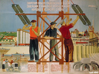 “Workers of the World Unite” (German print, 1889, produced to celebrate May Day, May 1st, as an international day of worker unity). Source German History in Documents and Images“Year of Proletarian (Worker) Dictatorship” (Alexander Apsit, Russian poster, produced on the one year anniversary of the Bolshevik/Communist Revolution, 1918) Source Wikipedia“Off to Collective Work”, Soviet poster, c. 1930. Source Loyola University Chicago“Let’s consolidate the victory of socialism in the USSR! Let’s technically reconstruct the country’s economy!” Soviet poster, 1932. Source International Institute of Social History